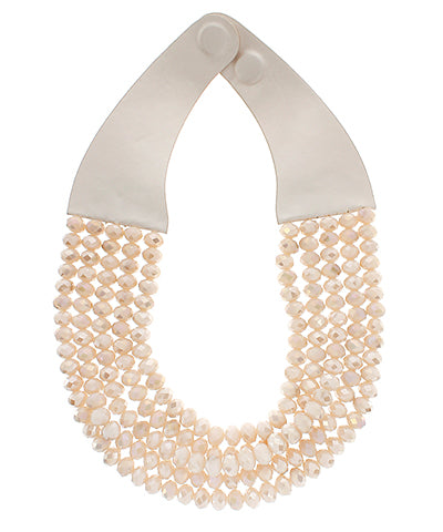 Faceted Cut Glass Bead Layered Necklace-Ivory