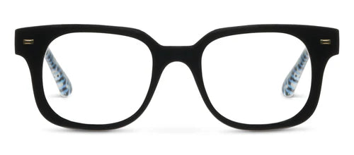 Glossary pairs a confident square shape with eye-catching details, from the metal pins on the front to the patterned print tucked along the interior temples. The result is a bold, balanced frame that brings a little bit of personality to whatever the day has in store
