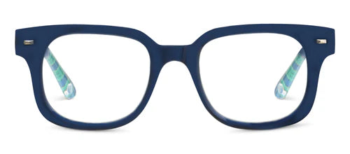 Glossary pairs a confident square shape with eye-catching details, from the metal pins on the front to the patterned print tucked along the interior temples. The result is a bold, balanced frame that brings a little bit of personality to whatever the day has in store