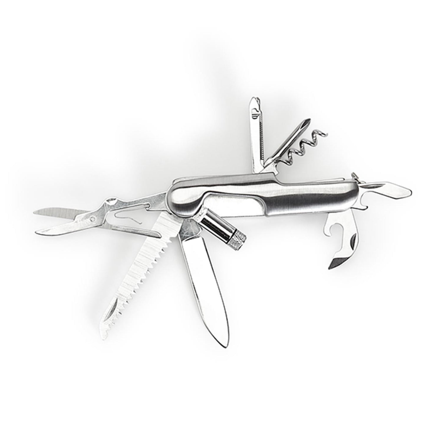 - Discard the messy toolbox: A multitool pocket knife includes 11 important utility functions (Bottle Opener, Flathead Screwdriver, Philips Screwdriver, Key Ring, Scissors, LED Light, Corkscrew, Saw, Knife, Can Opener, Nail File, Nail Cleaner, Needle) It is also suitable as camping gear, survival gear!