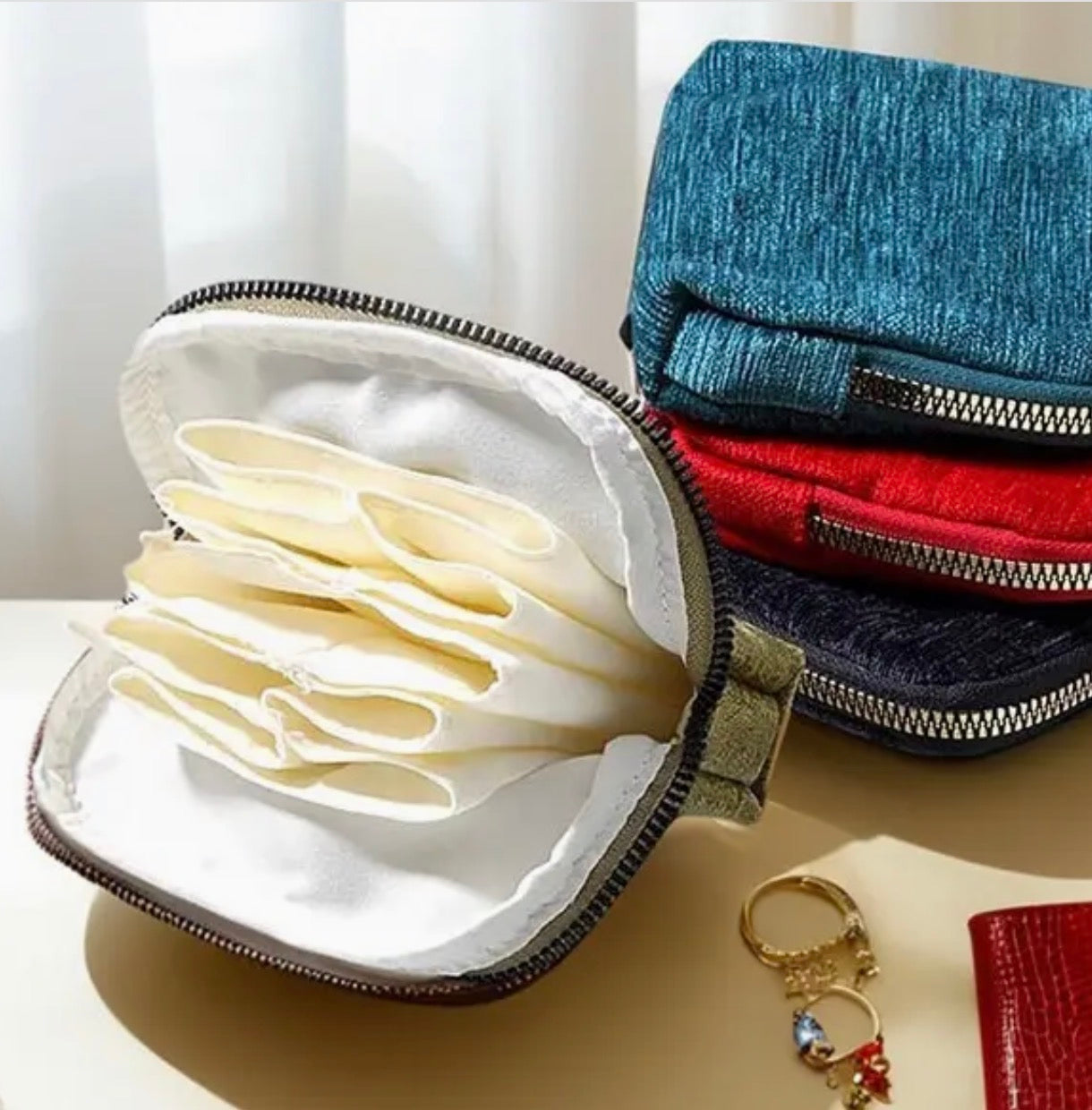 Compact soft fabric jewelry organizer. Great for travel! So pretty, with lots of colors to choose from.