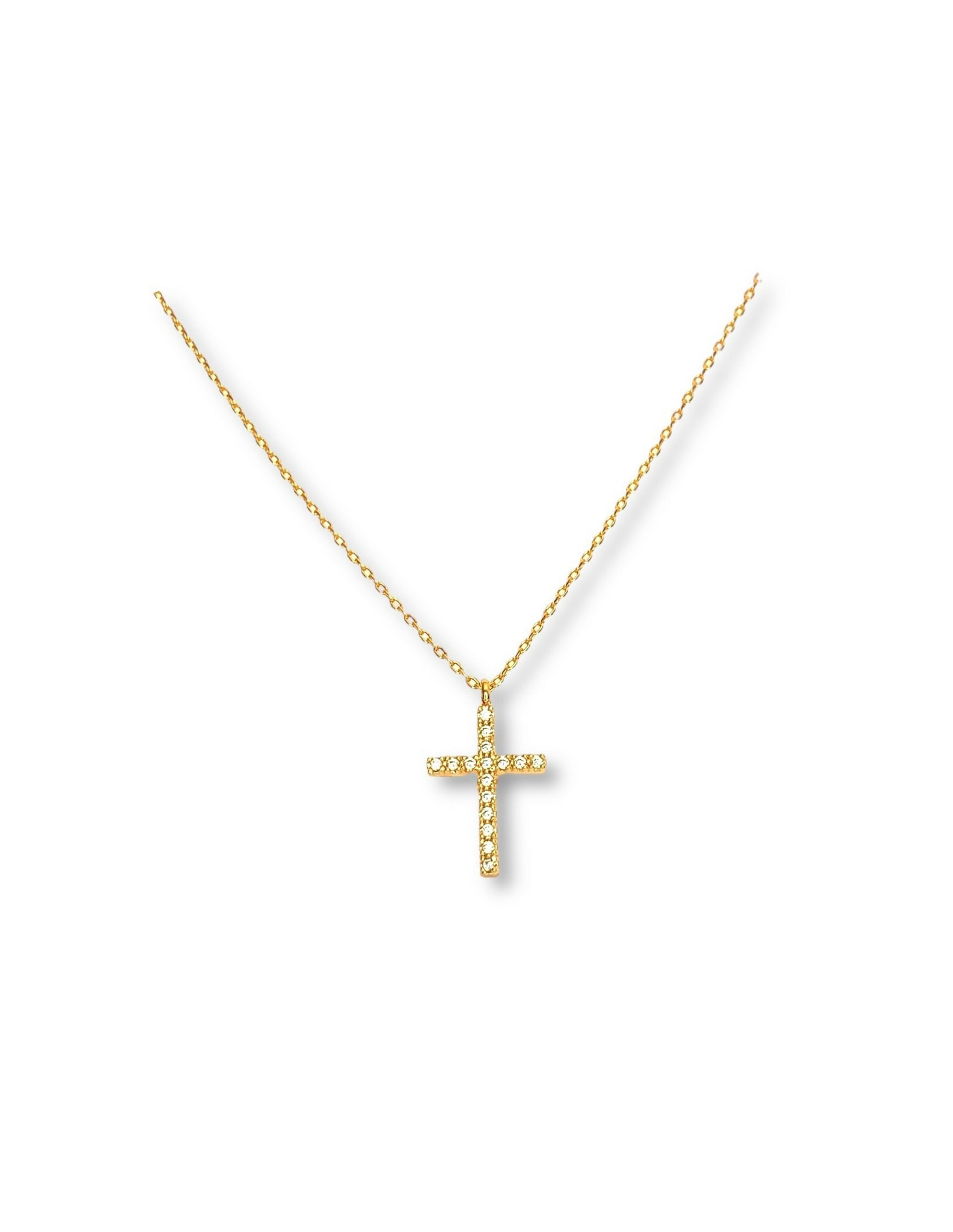 Ada classic cross pendant necklace with high quality hand set CZ, Gold finish