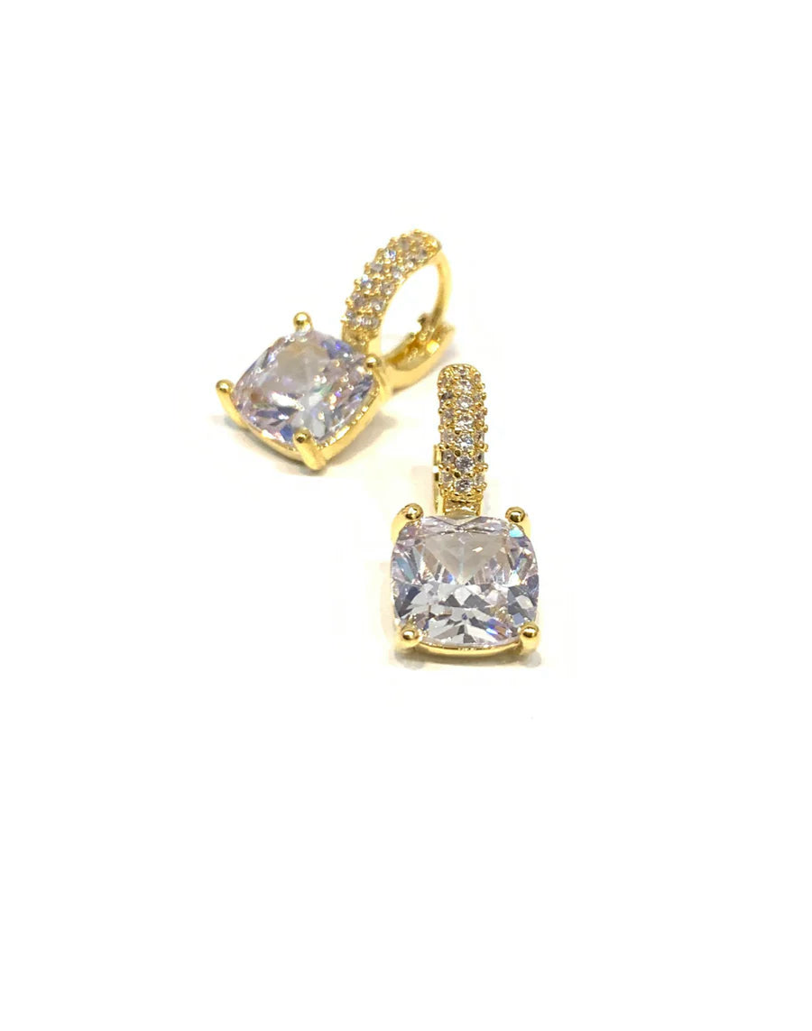 Averi hooped stud earrings with hand set cushion cut high quality CZ, Gold finish, Clear