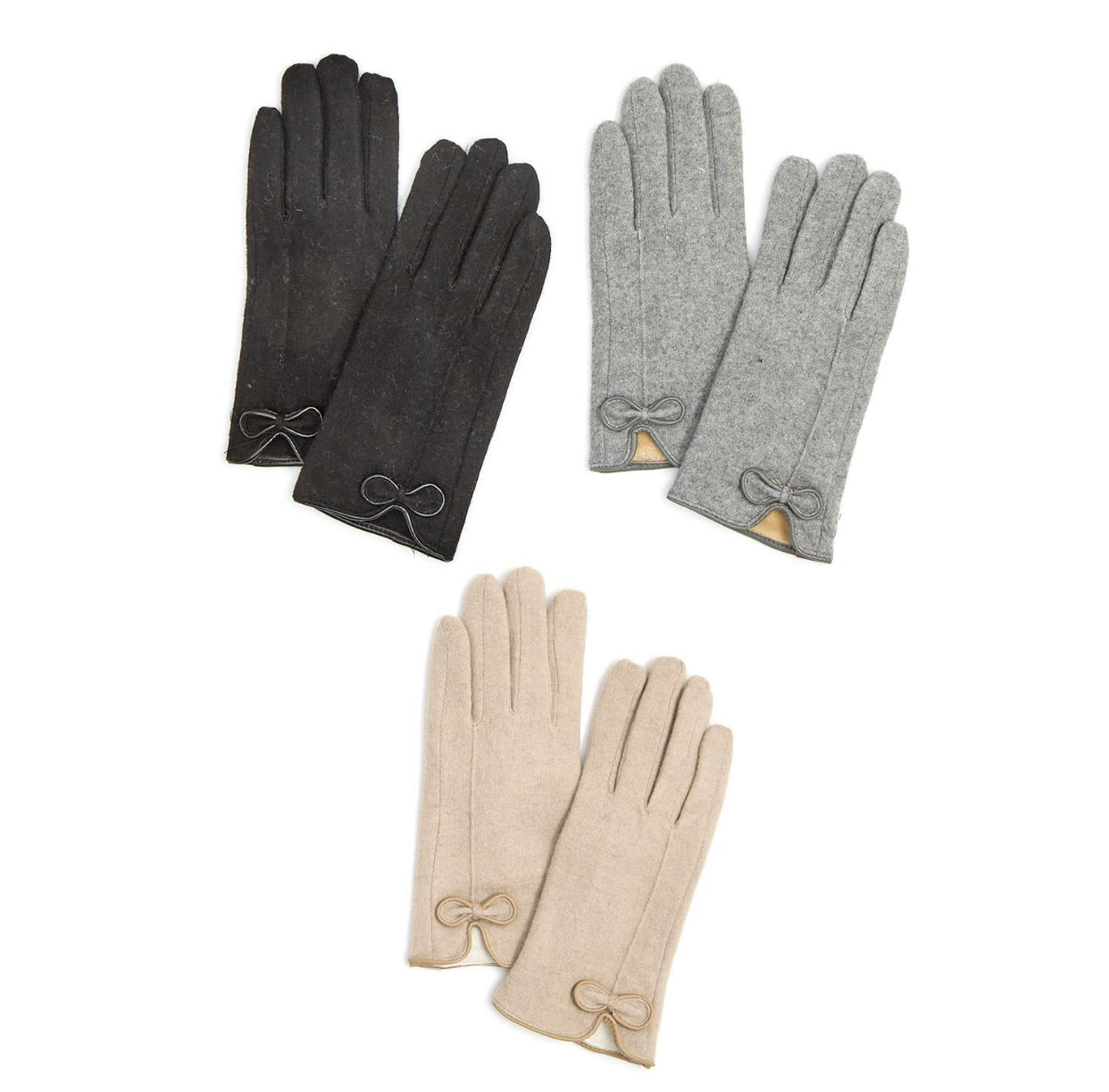 Flannel And Fleece Glove With Bow Detail 3/Colors