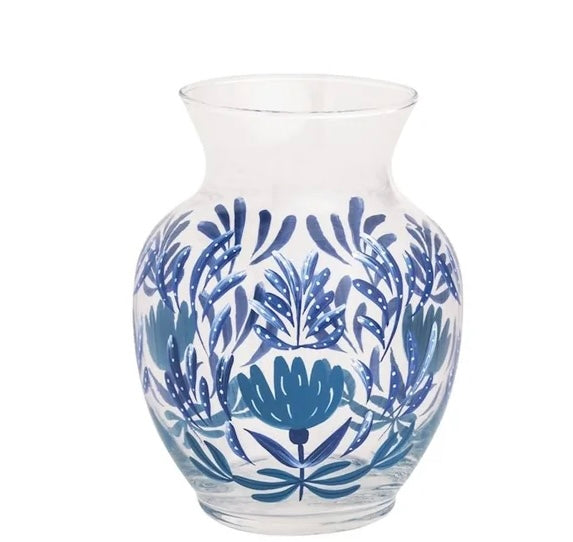 Discover the exquisite charm of the Mud Pie - Glass Vase - Blue Floral, a stunning hand-painted glass vase that adds a touch of elegance to any space.