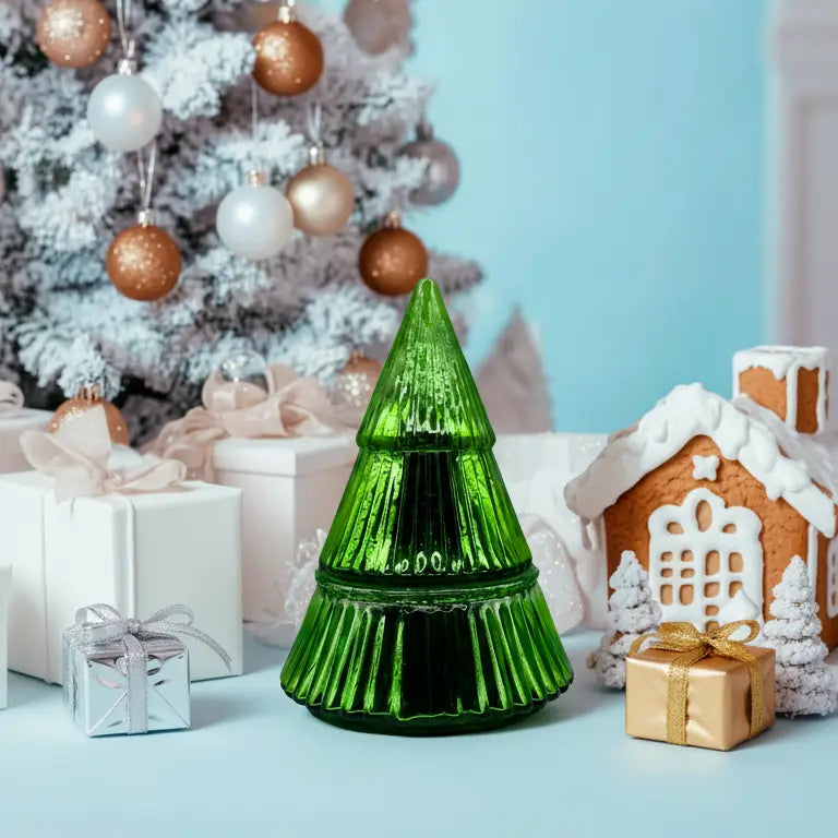 Mistletoe & Holly Glass Tree Candle