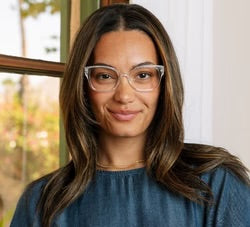 Glimmer adds a touch of flash and flair to the looks you love. These gorgeous glasses feature a unique step dimension effect, eye-catching gold rectangle pins, and alluring glitter finish that sparkles throughout the frames.
