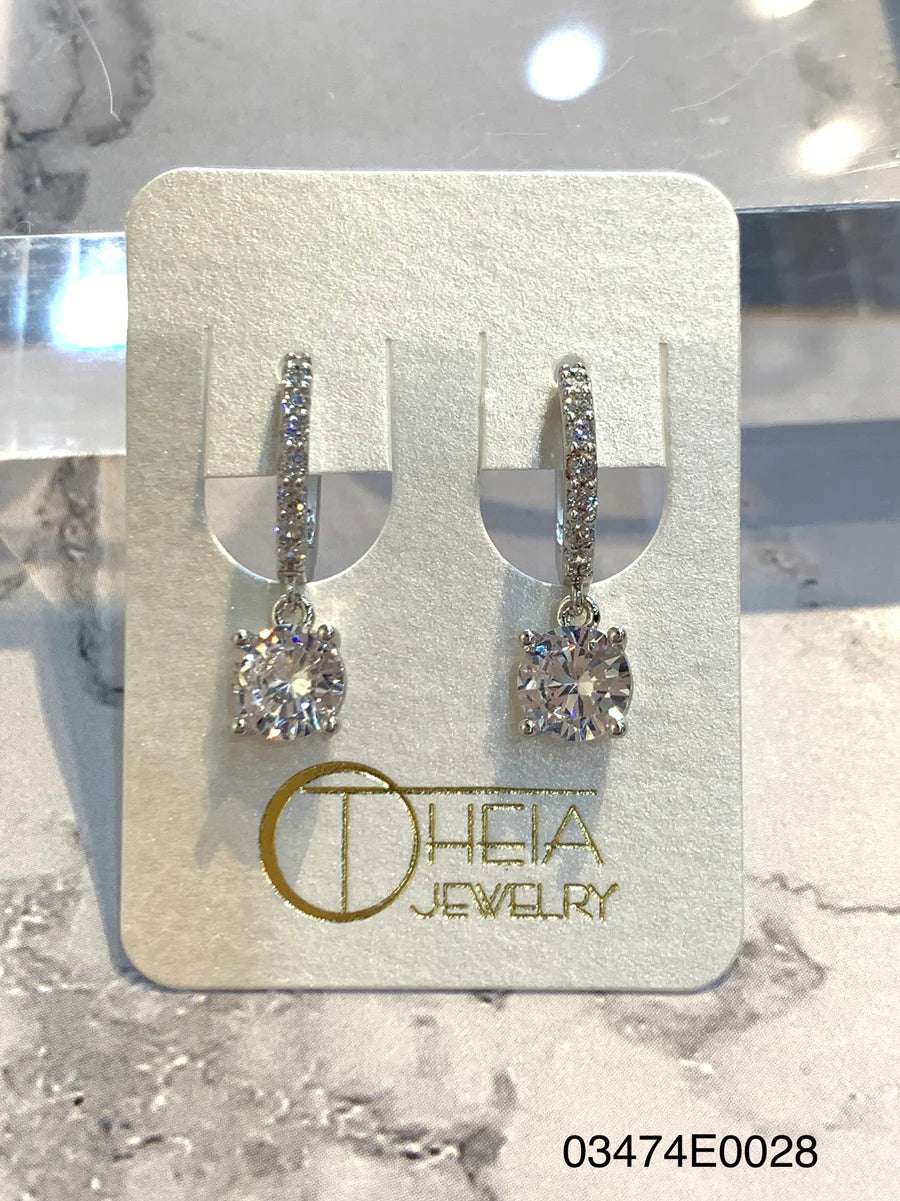 Clara huggie hoop with dangling round cut high quality CZ, Gold finish