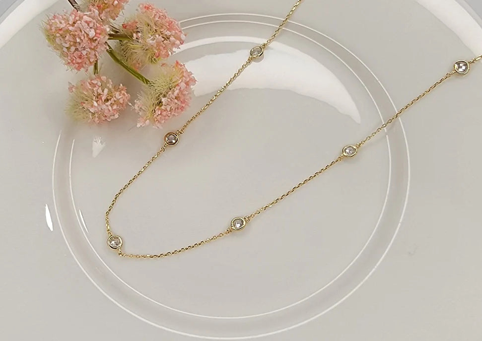 Log CZ Crystal Necklace- Gold